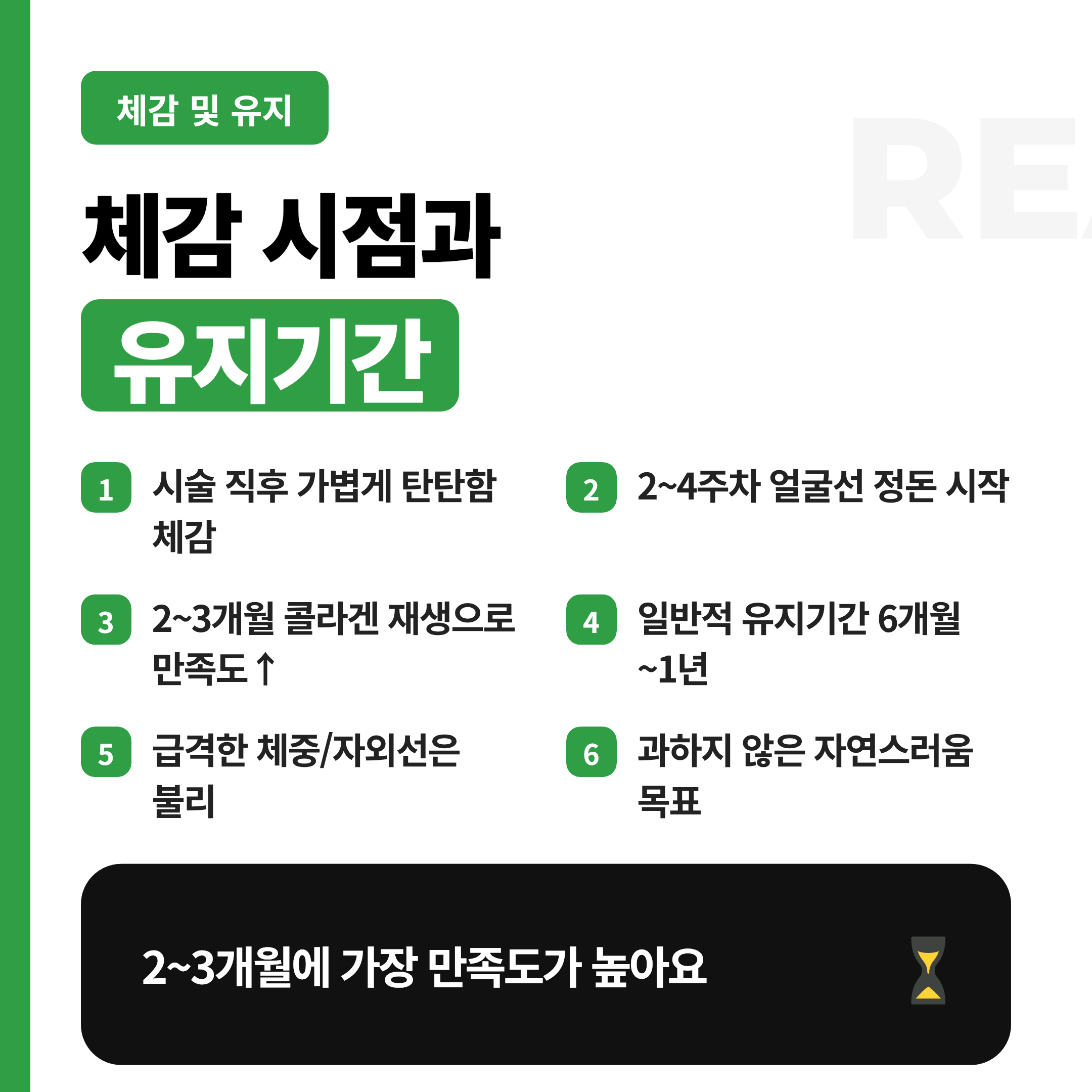 - 6개월 이후 생활습관과 피부 상태에 따라 서서히 유지력이 달라져요