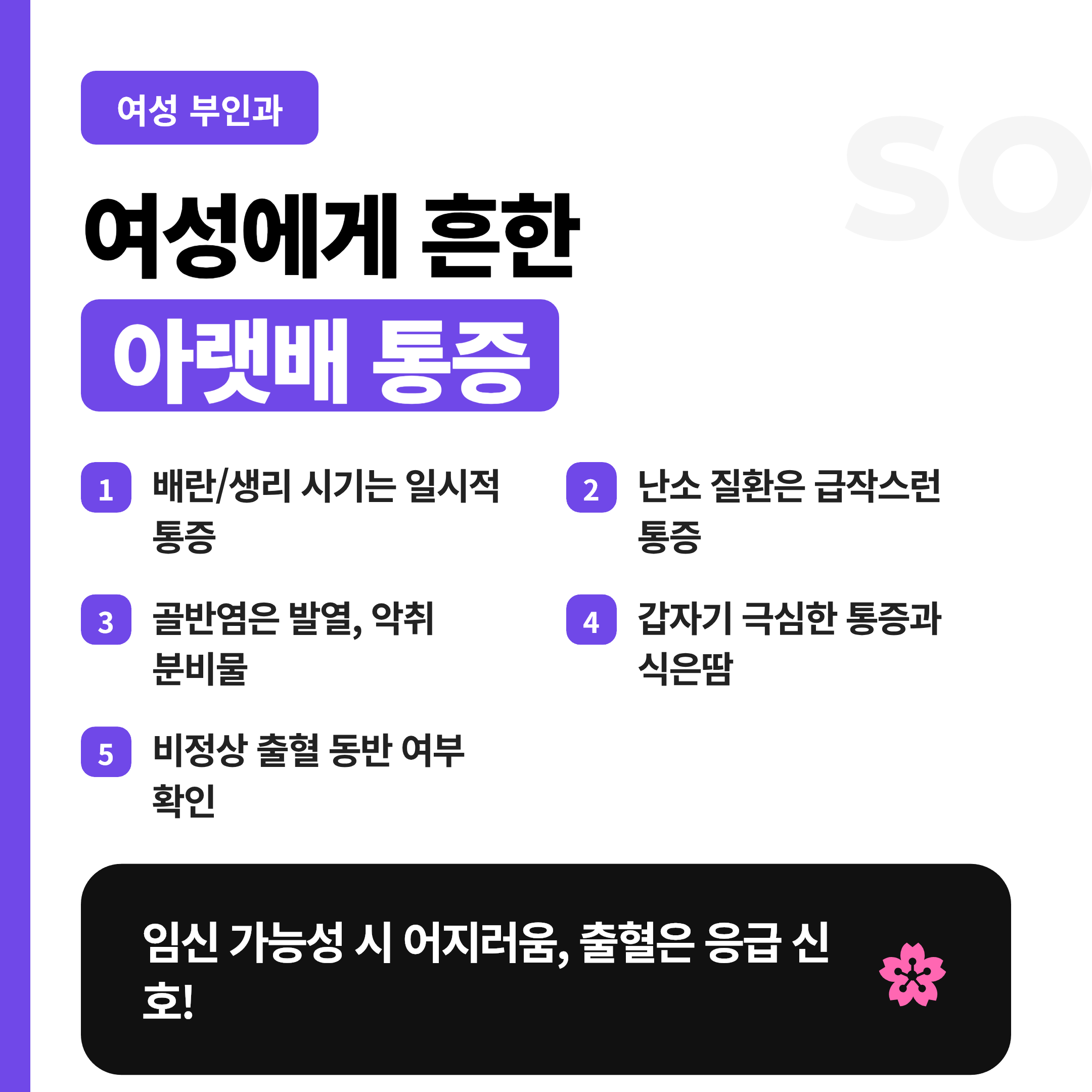 임신 가능성이 있거나, 갑자기 참기 힘든 통증과 어지러움이 있다면 빠른 진료가 우선이에요