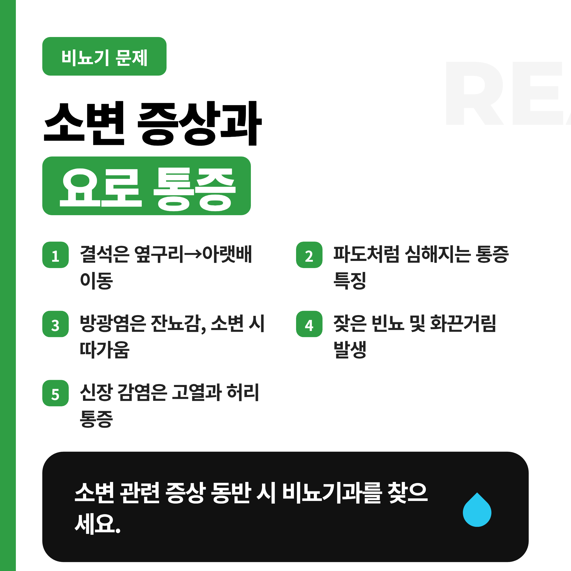 - 소변 통증, 빈뇨, 옆구리 통증이 있으면 비뇨기과
